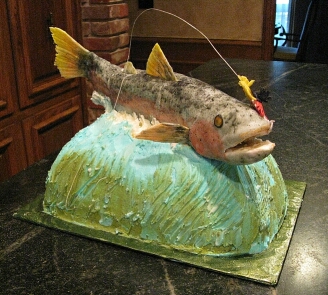 In last week’s newsletter I said I’d tell you why I was so rushed. I later decided that a lot of it was boring business stuff and one part was a surprise I must save for later. But it would be fun to share one of the activities: I was making a cake for my grandson Tanner’s birthday. He is interested in fishing at the moment. Everything you see is edible including the fishing lure and the line (rice noodle). (No. Sorry, this isn’t a health food cake.) I’ve hidden a link to photos of some of my other cakes on the RadioMartie.com site. (Hint, it’s somewhere under “About Us“.) If I ever make one of these rainbow trout cakes again I know now how to do it better, stronger and faster.